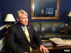 罗拉巴克议员在进入国会之前曾经是里根总统的演讲写作人。他的办公室墙上挂了很多他与里根总统的合照。